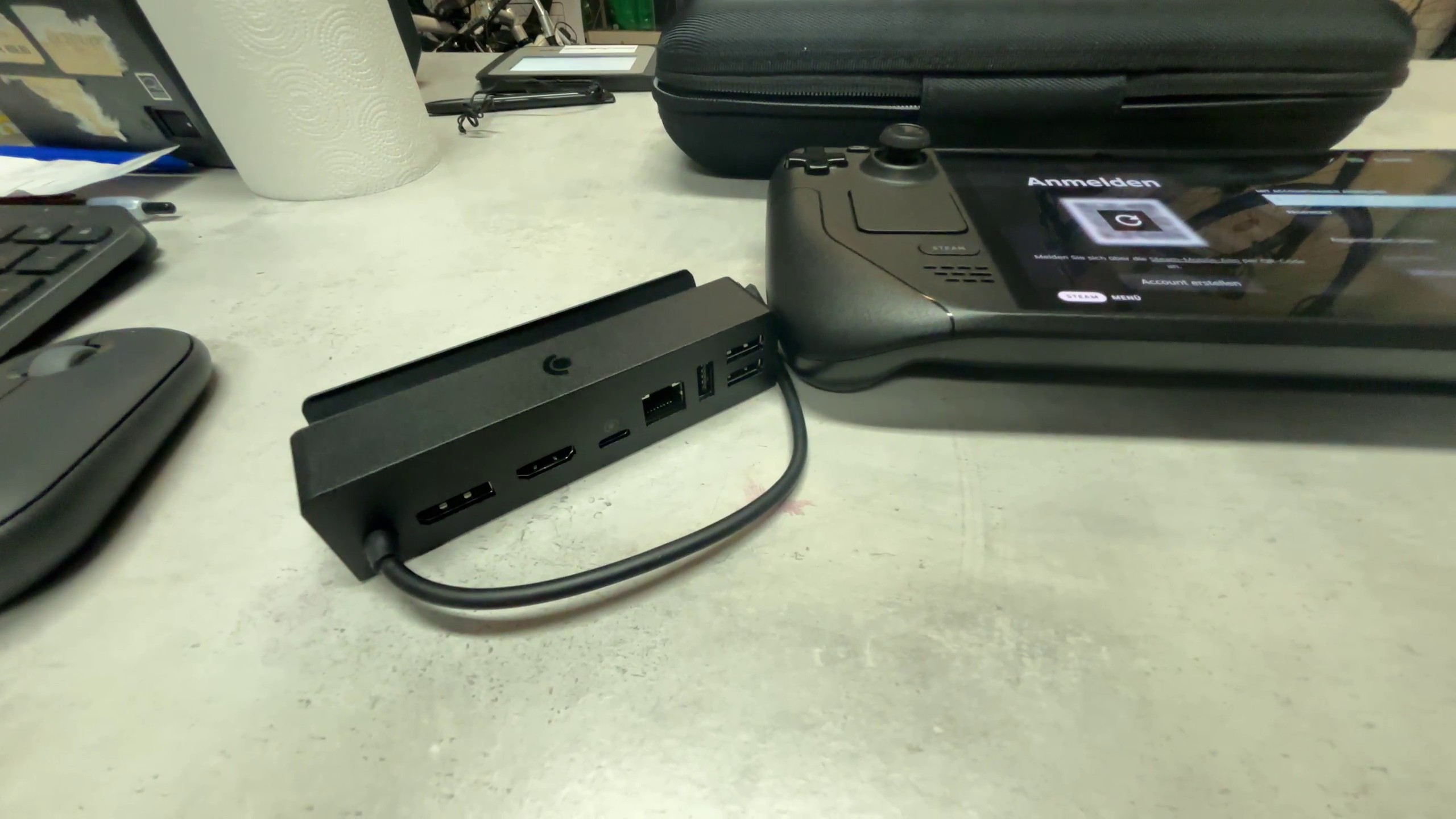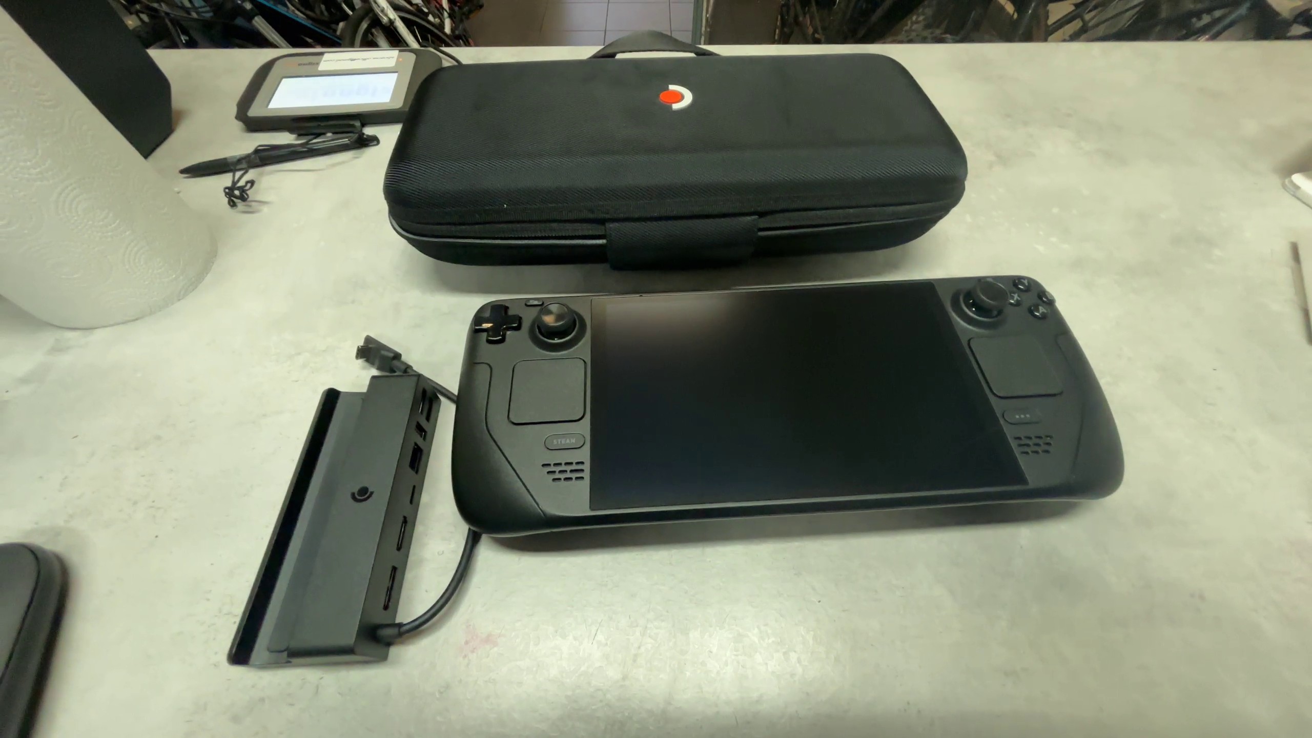 Hier ist eine kurze Beschreibung des Steam Deck OLED 1TB mit LG, Koffer und Ladestation: