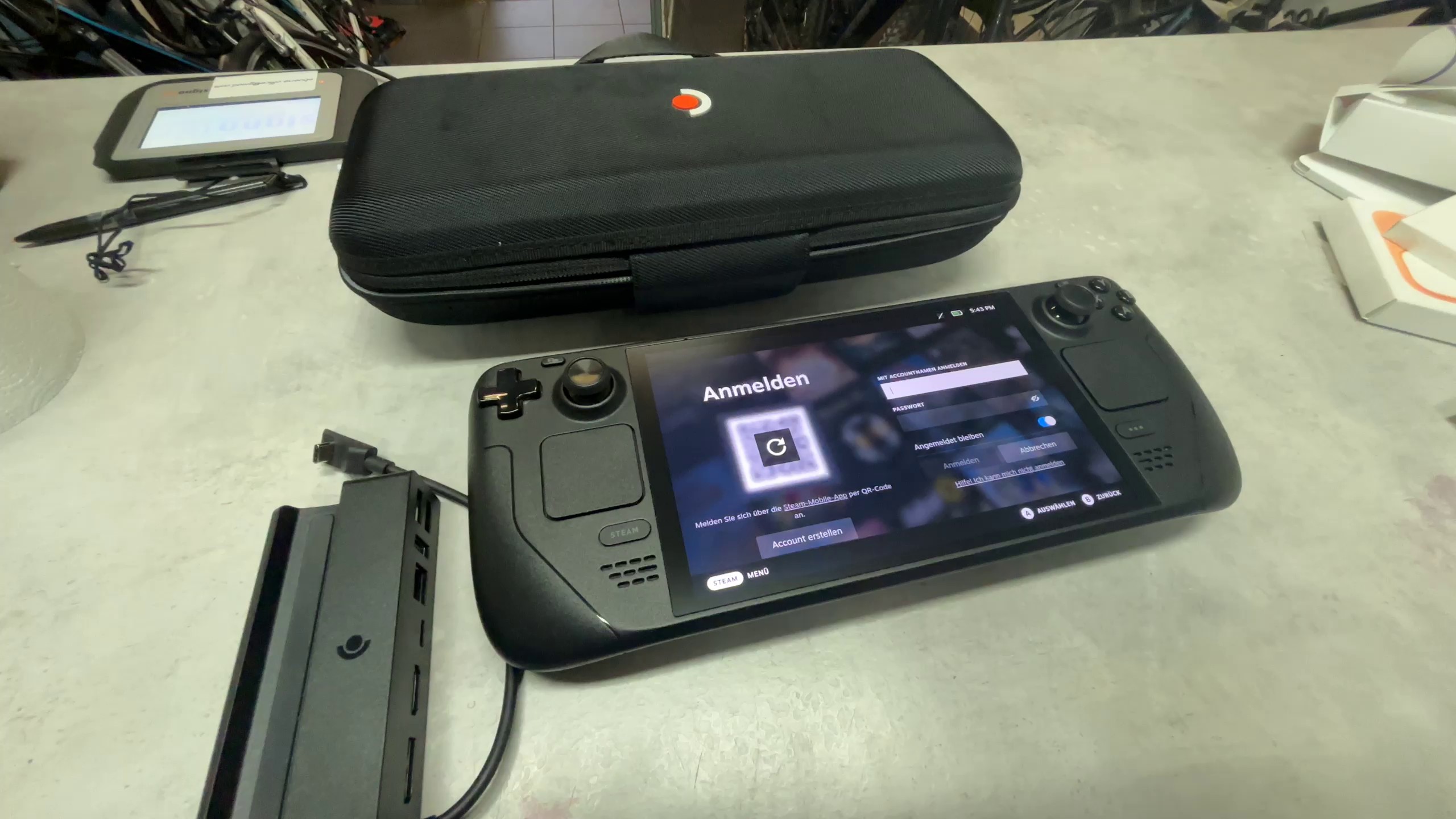 hier ist eine kurze Beschreibung des Steam Deck OLED 1TB, inklusive LG, Koffer und Ladestation, basierend auf aktuellen Informationen: