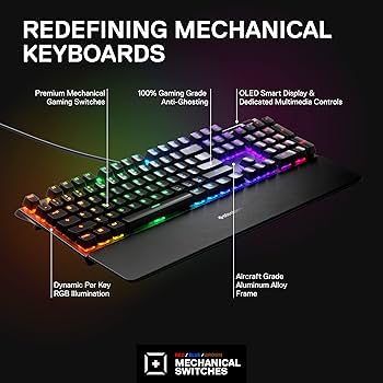 Die SteelSeries Apex 7 ist eine leistungsstarke mechanische Gaming-Tastatur, die für höchste Ansprüche an Präzision und Langlebigkeit entwickelt wurde. Ausgestattet mit reaktionsschnellen, linearen Red-Switches bietet sie ein flüssiges Tippgefühl, ideal für schnelle Spielmanöver. Das integrierte OLED-Smart-Display dient als Kommandozentrale für In-Game-Informationen, Discord-Benachrichtigungen und Profileinstellungen, während der Rahmen aus Flugzeugaluminium für extreme Stabilität sorgt.