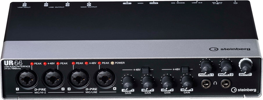 Das Steinberg UR44 ist ein leistungsstarkes USB 2.0 Audio-/MIDI-Interface, das sich ideal für ambitionierte Nutzer im Home Recording oder (semi-)professionelle Anwendungen eignet und eine hervorragende Audioqualität in einem robusten, mobilen Gehäuse bietet. Es kombiniert erstklassige Wandlertechnologie mit vier Class-A D-PRE Mikrofonvorverstärkern und DSP-basierten Effekten für latenzfreies Monitoring.