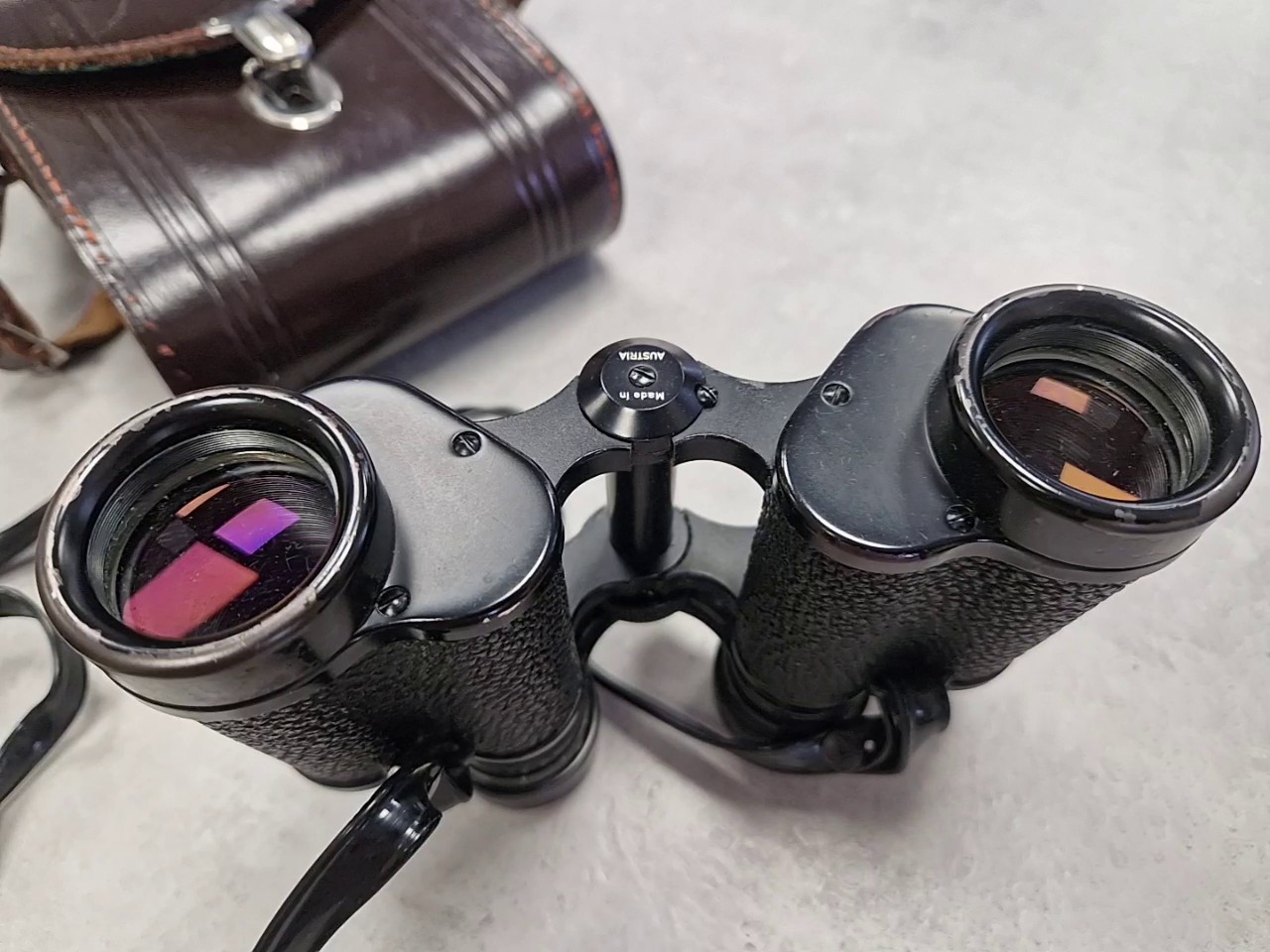 Klassisches Porro-Fernglas, Made in Austria, inklusive original Ledertasche, gebrauchter Zustand.