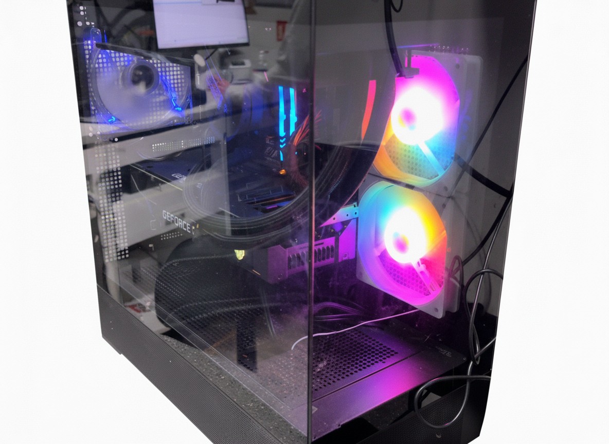 Leistungsstarker schwarzer Thermaltake Gaming PC, ideal für anspruchsvolle Spiele und Multitasking. Angetrieben von einem AMD Ryzen 7 5800X Prozessor und der NVIDIA GeForce RTX 4060 Ti Grafikkarte mit 8GB VRAM, bietet dieser PC flüssige Frameraten und moderne Features wie Raytracing. Ausgestattet mit 32GB Arbeitsspeicher und einer schnellen 1TB NVMe SSD sorgt er für kurze Ladezeiten und effizientes Arbeiten. Das System ist in einem markanten Thermaltake Gehäuse verbaut.