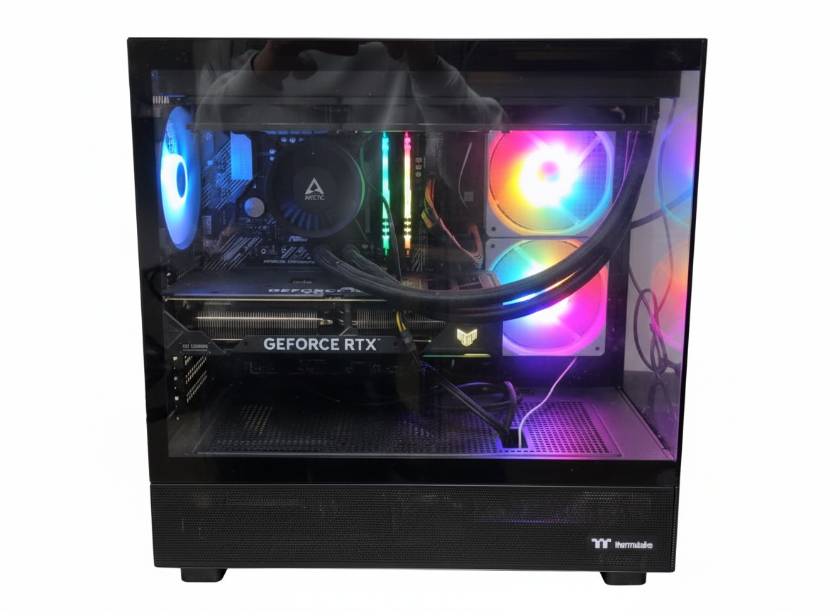 Gaming PC mit Ryzen 7 5800X, 32GB RAM, 1TB SSD und RTX 4060 Ti 8GB in Thermaltake Gehäuse.