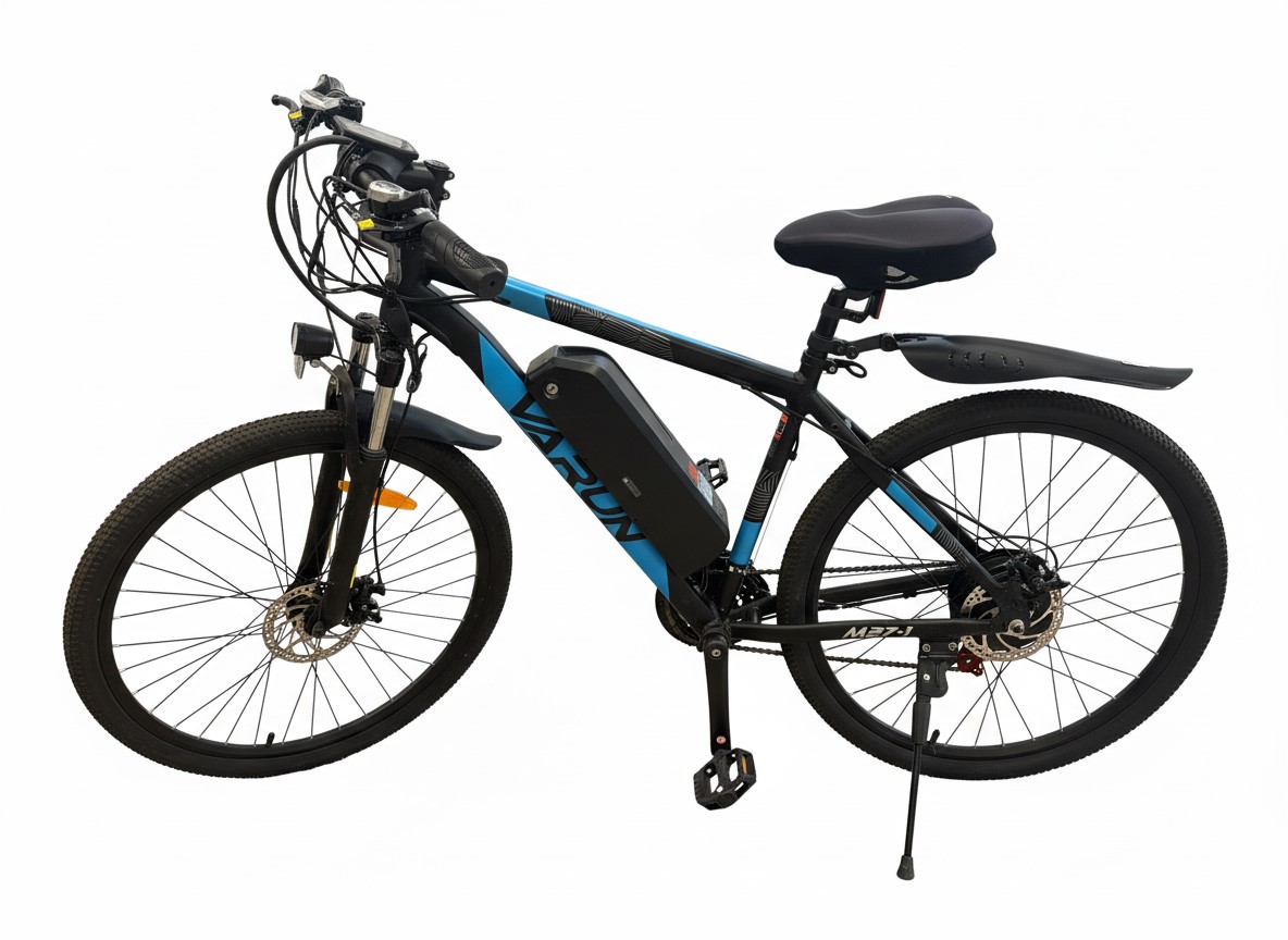 Das VARUN M27-1 ist ein robustes 27,5 Zoll E-Mountainbike, konzipiert für Vielseitigkeit und Komfort auf täglichen Wegen und leichten Trails. Es verfügt über einen Aluminiumrahmen, eine Federgabel vorne zur Dämpfung von Unebenheiten und ein zuverlässiges Shimano 21-Gang-Schaltsystem. Die EU-konforme Version bietet einen bürstenlosen Motor mit 250W Leistung und 55 Nm Drehmoment, unterstützt durch einen herausnehmbaren 48V 13Ah (624Wh) Akku, der eine Reichweite von bis zu 100 km im Pedalunterstützungsmodus ermöglicht. Das Fahrrad ist mit mechanischen Scheibenbremsen vorne und hinten ausgestattet und unterstützt eine maximale Zuladung von 150 kg.