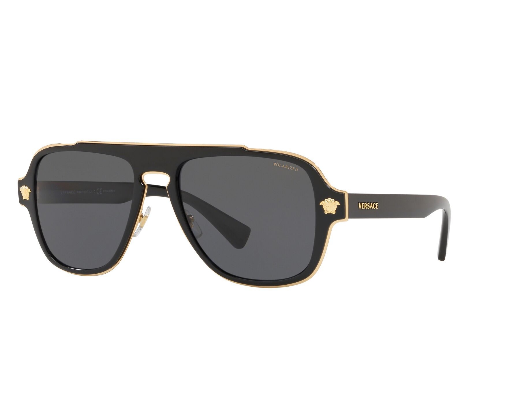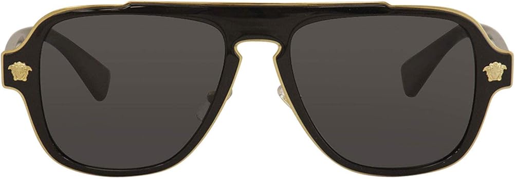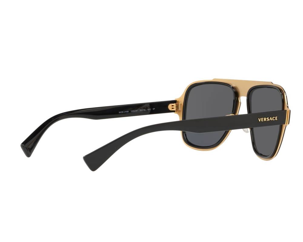 Die Versace VE2199 ist eine Herren-Sonnenbrille im Pilotenstil mit einem markanten Design. Das Modell VE2199 100281 verfügt über einen schwarzen Metallrahmen und polarisierte, grau getönte Polycarbonat-Gläser. Die polarisierten Gläser bieten 100% UV-Schutz und reduzieren Blendung. Die Bügellänge beträgt 145 mm, die Stegbreite 18 mm und die Glasbreite 56 mm. Ein Medusa-Logo ziert das Brillengestell. Die Sonnenbrille wird mit Originalverpackung (ovp) und Originalrechnung vom 21.10.2025 geliefert.